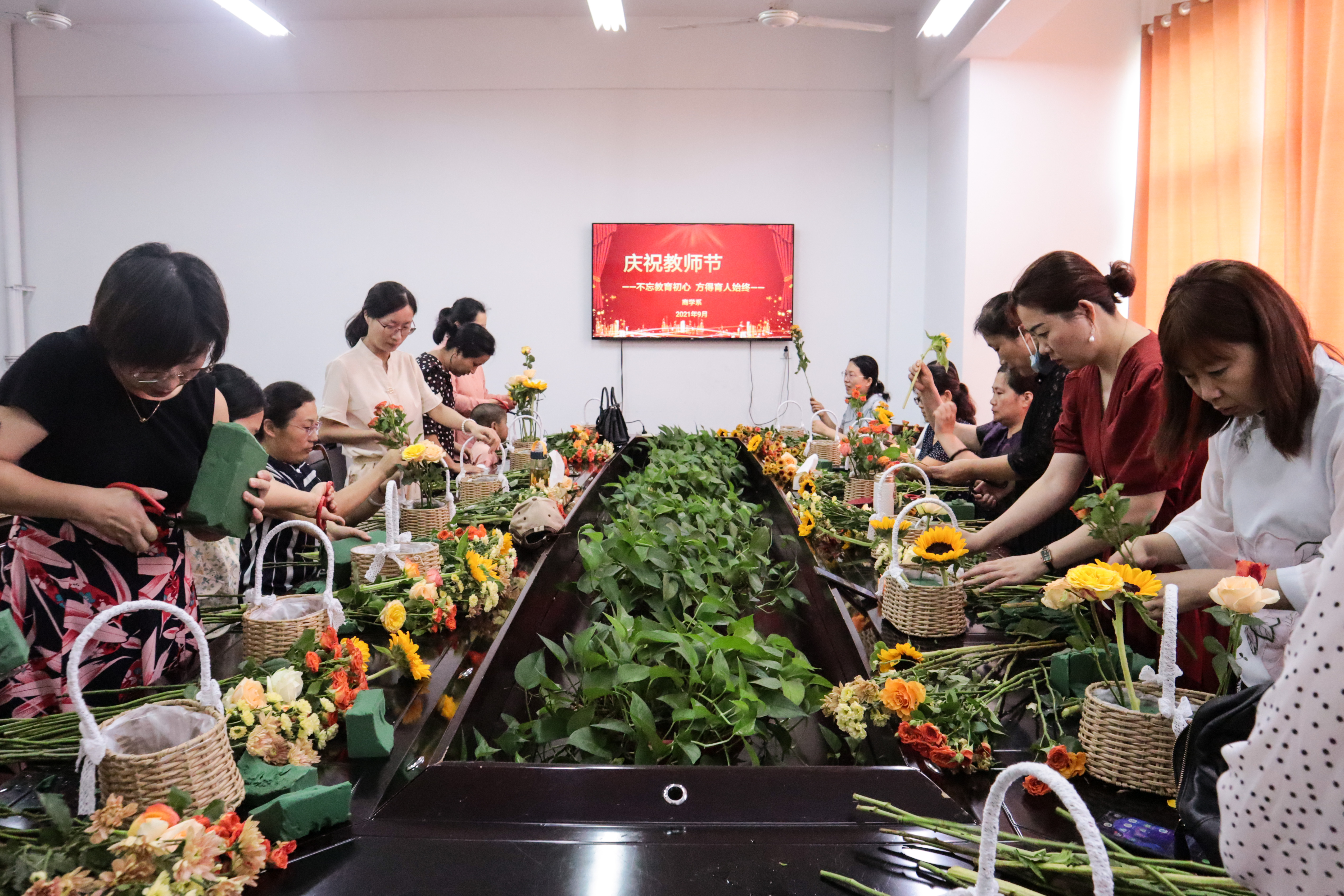会后,商学系分工会组织开展了创意插花活动。本次教师节座谈会和插花活动增强了商学系的凝聚力,调动了老师们的积极性,提升了教师们的获得感和幸福感。(商学系 张学芳)