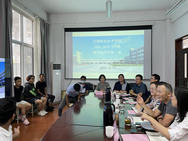 8月31日下午,国际教育系(国际合作与交流中心)在和润楼B115开启留学生“开学第一课”。国际教育系(国际合作与交流中心)主任杨静、副主任张子龙,建筑工程系、机电工程系、电子信息工程系、通用航空系留学生专业课教师代表以及留学生班主任、中文课教师代表一起为留学生讲授了开学第一课,线上线下同步开讲。