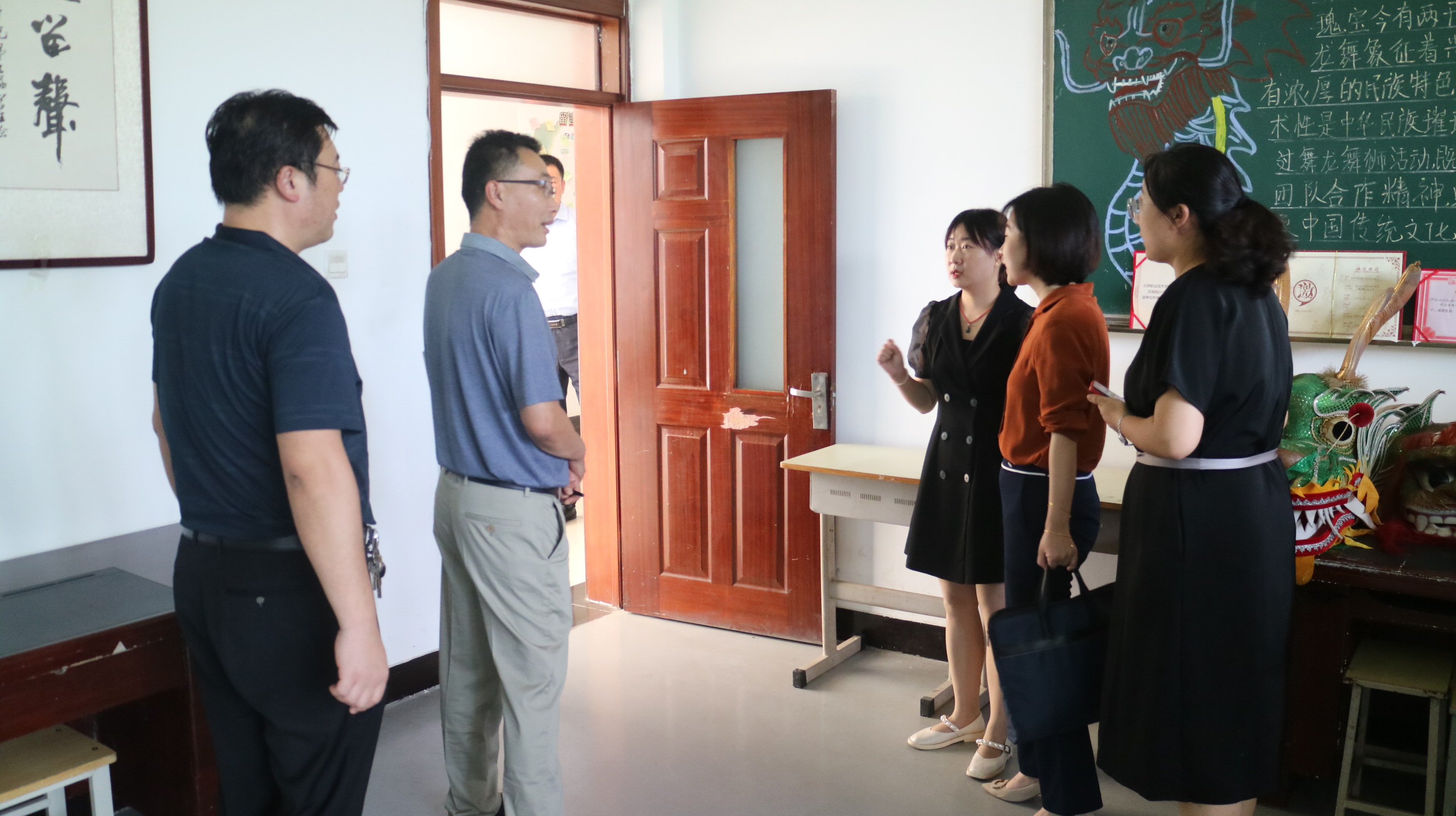 万基茹一行首先来到我系学生会办公室、心理咨询室和学生社团活动室等学生活动场所,就学生活动开展情况做交流,对我系团组织建设和社团活动予以肯定。
