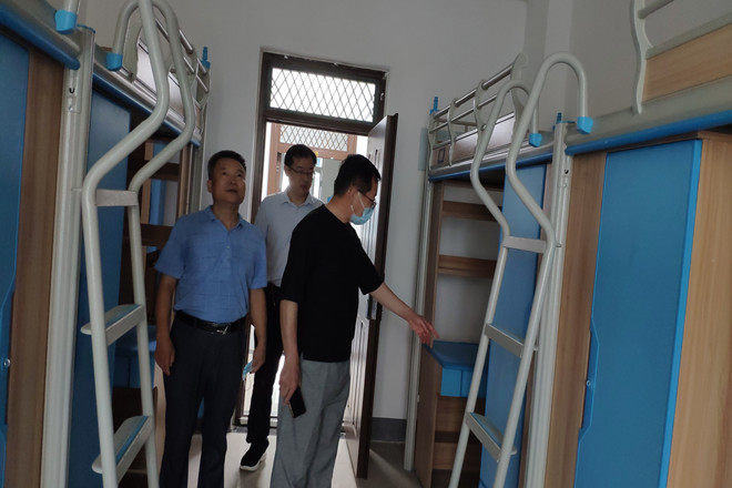 董书超走进校内新分配的学生宿舍,仔细查看了宿舍内的配置、宿舍环境及相关配套设施的准备情况。详细询问了宿舍搬迁的筹备情况,叮嘱辅导员、班主任要做好服务工作,确保搬迁工作顺利有序完成。他还走进学生餐厅,实地查看了餐厅的就餐环境、菜品配置等情况,还跟就餐学生亲切交谈,嘱咐他们要多吃健康食品,确保身体健康。