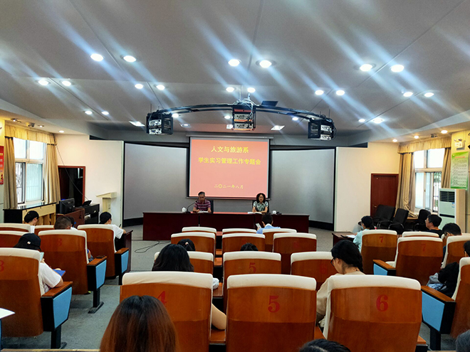为了进一步加强学生实习管理,规范学生实习指导工作,8月28日下午,人文与旅游系在和润楼一楼报告厅召开了学生实习工作专题会。会议邀请教务处处长卢兆丰到会进行业务培训和指导,人文与旅游系党总支书记李侠主持会议,旅游管理专业和酒店管理与数字化运营专业全体教师参加。