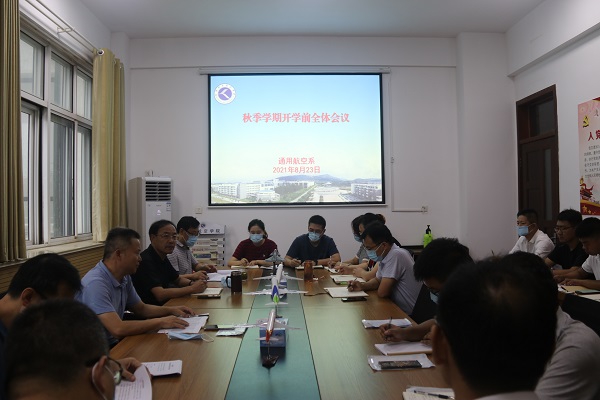 牟盛勇向大家通报了近期学校有关秋季学期开学的工作要求。副院长孟凡收安排了“说课”“说专业”等有关教学工作;副院长袁良传达了学校《2021年秋季学期开学工作方案》精神,带领大家集体学习了《通用航空系2021年秋季学期开学工作方案》;党总支副书记费涛调度了毕业生就业等有关工作。