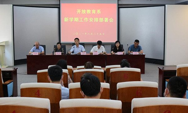为推进新学期工作顺利开展,8月25日上午,开放教育系新学期工作安排部署会在和润楼一楼报告厅举行,会议由系主任丁明军主持,党总支书记安佰峰及各分管负责同志和全体教职工参加了会议。