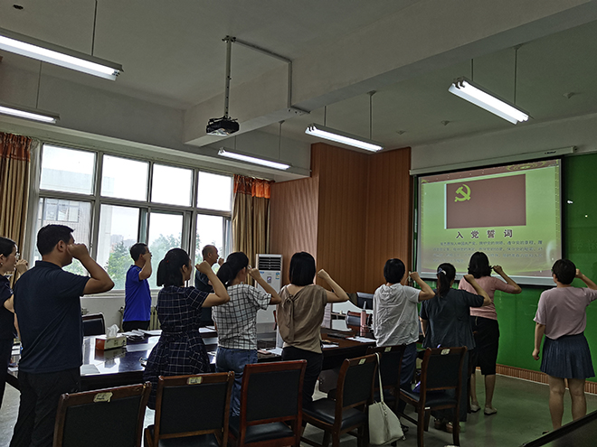 会上,各支部全体党员在支部书记领誓下,重温了入党誓词,接着支部书记宣读了此次组织生活会的会议议程和要求;随后,各支部书记代表支委会向支部全体党员进行对照检查,党员教师逐一进行个人党性剖析。在相互批评阶段,支部党员以客观事实为依据,敢于揭短、态度端正、不遮不掩,坦诚相见、直言不讳,开门见山、直奔主题,达到了交流思想、接受教育、凝聚共识的目的。