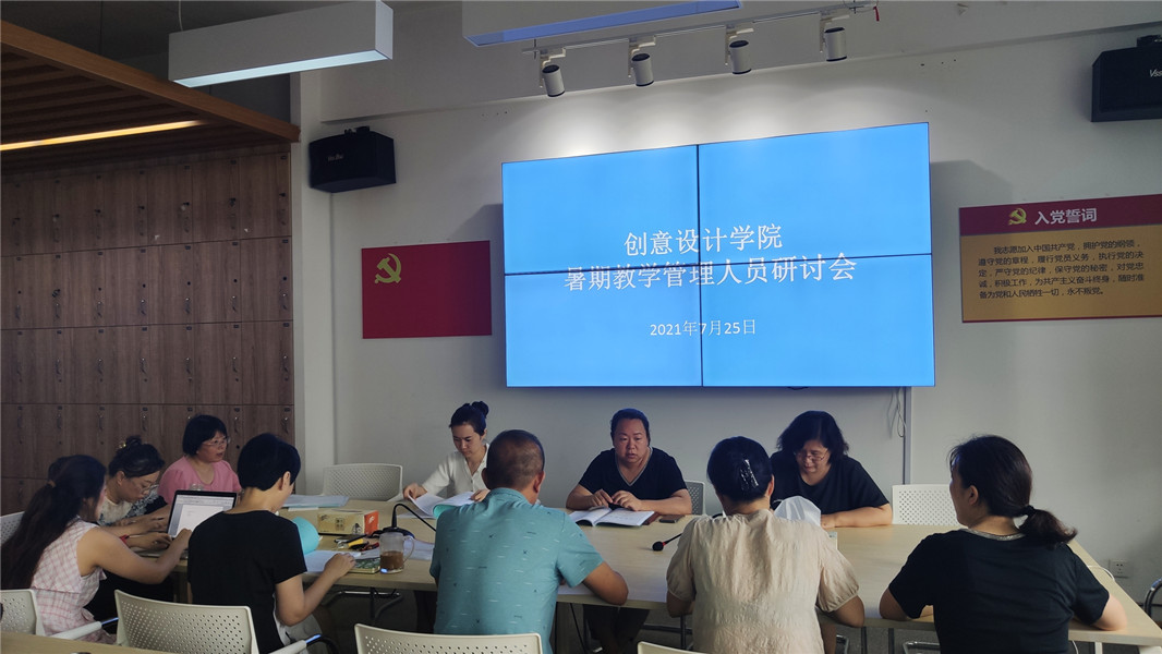 7月25日上午,创意设计学院在地滋楼A219会议室开展暑假教学管理人员培训研讨活动,教学副院长李德华、教学科长杜鹃、各教研室主任,文化创意设计高水平专业群相关人员以及全体教学管理人员参加。