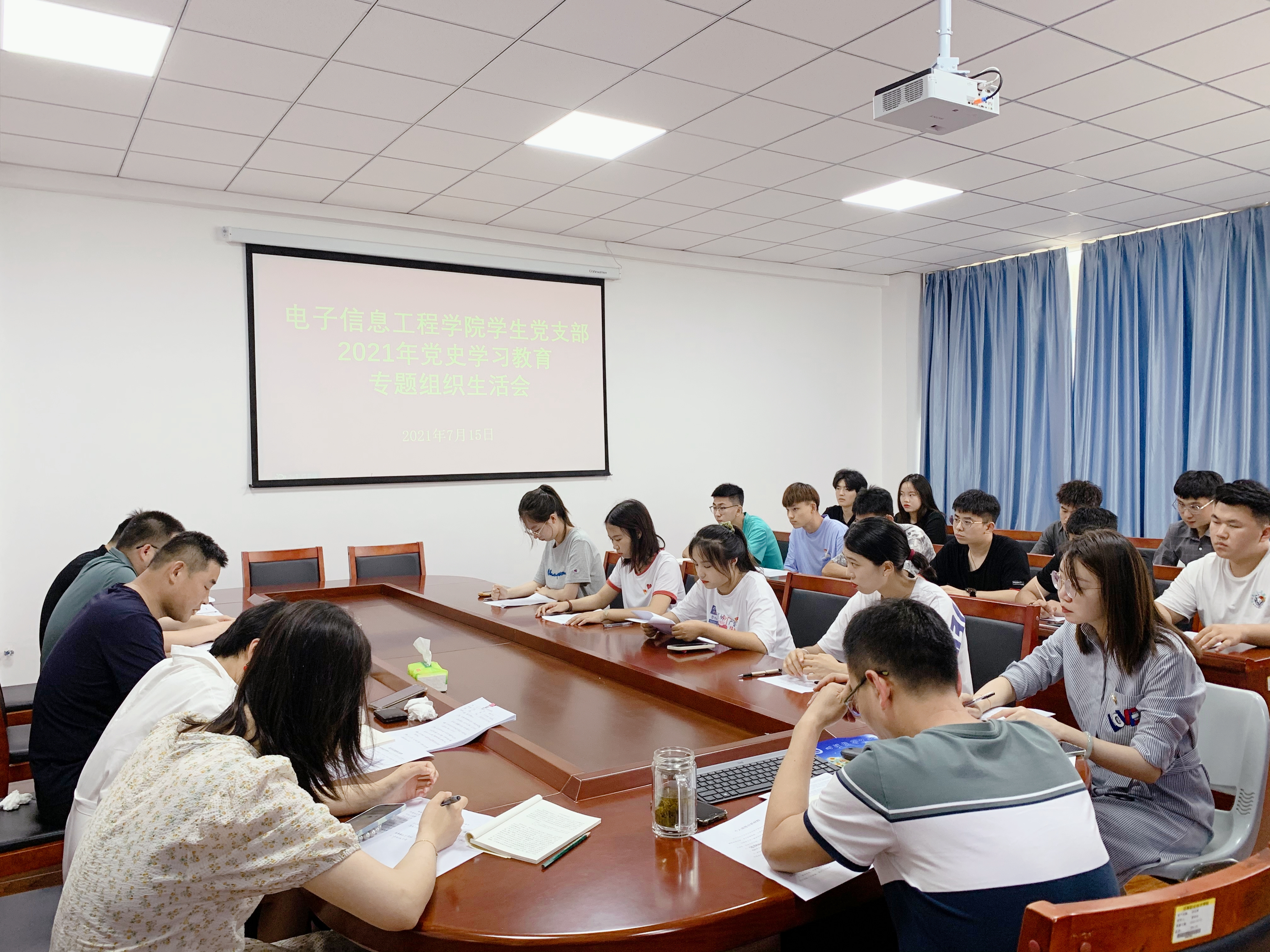 7月15日下午,按照学校党委工作安排,电子信息工程学院学生党支部在地滋楼A404召开了党史学习教育专题组织生活会,会议由学生支部书记田锋主持。