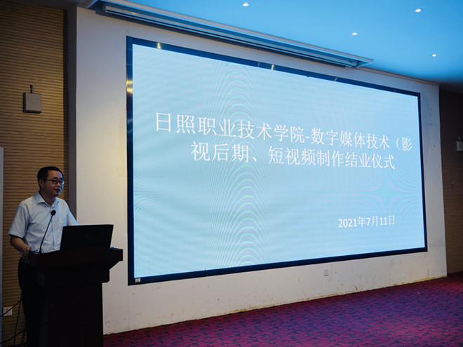 7月11日上午,2021年山东省“双高计划”引领“双师型”教师队伍建设工程教师培训-数字媒体技术(影视后期、短视频制作)结业仪式在地滋楼A区二楼报告厅举行。会议由创意设计学院副院长李德华主持,青岛影视动漫发展研究中心特约专家韩来栋、创意设计学院党总支书记、院长张永宾及参训教师参加。