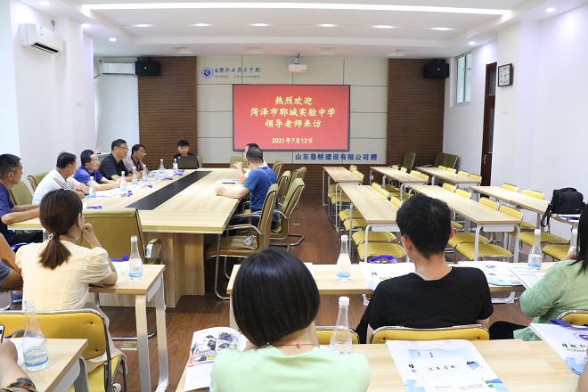 乔梓向客人介绍了学校与建筑工程学院的基本情况、师资专业和今年的招生政策;毛风华向客人介绍了建筑工程学院学生工作与管理现状与所取得的成就;郓城实验中学邵伟峰主任向学院介绍了郓城实验中学的基本情况和今年高考状况等。座谈会上还就双方人才联合培养、学生专业选择等问题进行了深入探讨和交流。