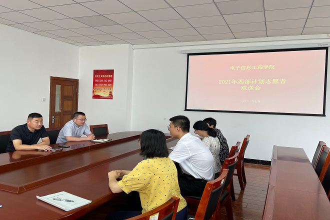 7月6日上午,电子信息工程学院召开了2021届西部计划志愿者座谈会。党总支副书记田锋、团总支书记马先波、辅导员、班主任、西部计划志愿者秦潇洋参加。