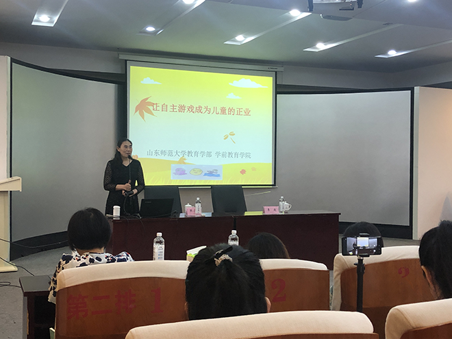 7月6日下午,人文与旅游学院邀请山东师范大学教育学部学前教育学院张小永教授作了题为 “让自主游戏成为儿童的正业”的专题报告会。日照市五十余名园长、幼儿园教师及人文与旅游学院学前教育专业教师参加了报告会。