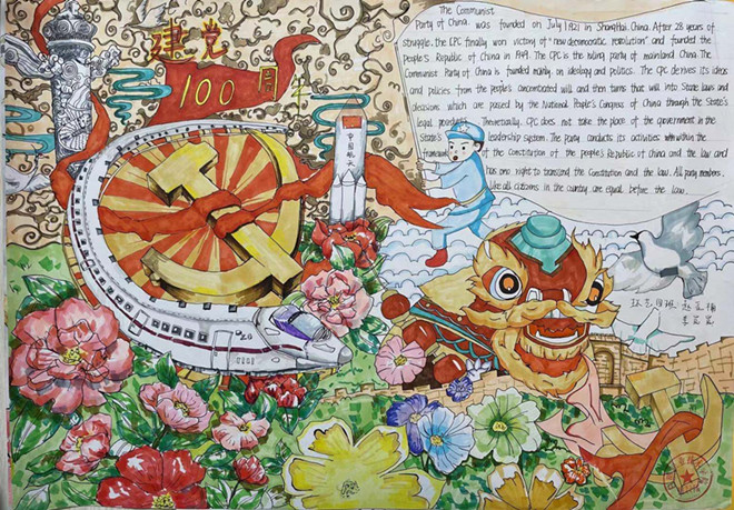 此次活动的开展,加强了红色文化教育,营造了英语学习氛围,同学们将专业与英语完美结合,为党的生日献上了一份厚礼。(创意设计学院 丁莹莹)