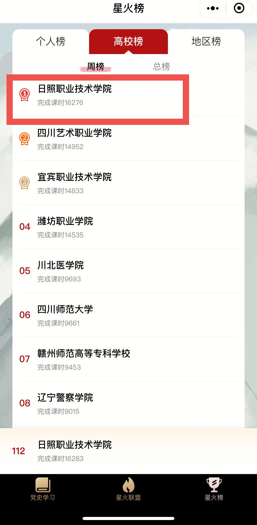 近日,团省委对“青年学党史,百问出真知”线上学习活动开展情况进行了通报,我校学习周课时全国高校排名第一。