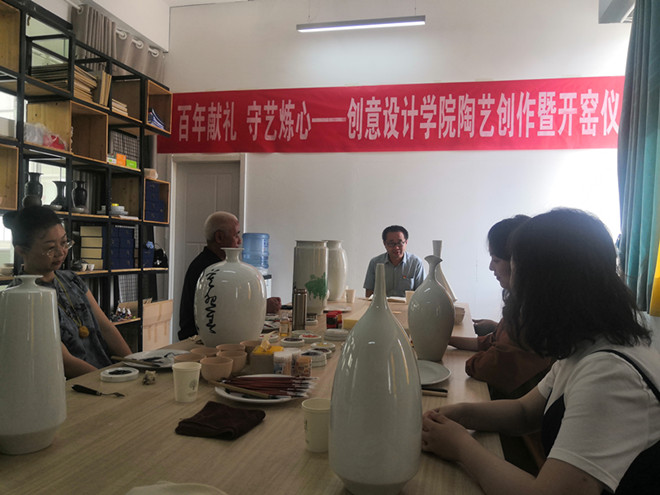 为庆祝中国共产党百年华诞及校艺术馆成立,创意设计学院依托省技能技艺传创平台,新购高温窑炉调试运行。6月22日上午,学院邀请九位专家教师在文化创意中心四楼黑陶大师工作室举办“百年献礼 守艺炼心”陶艺创作暨开窑仪式。创意设计学院院长张永宾,视觉传达教研室主任杨璐莎,专家教师庞维波、刘祥泽、王红雨、高海燕、于宁等参加启动仪式。