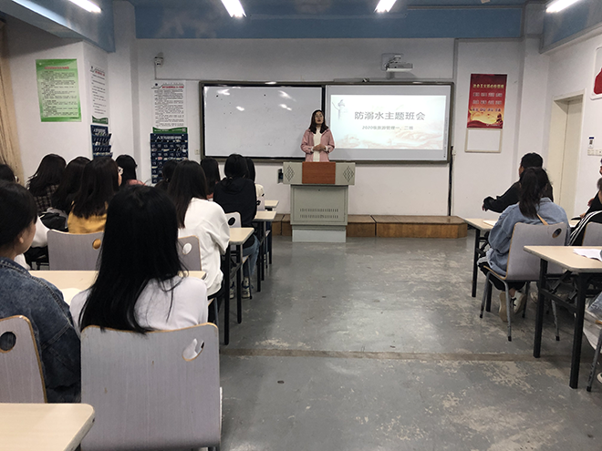 各班班主任根据学院要求,采用不同的方式召开主题班会,有的班级组织学生观看防溺水宣传片,有的通过案例分析,让同学们认识到生命的宝贵和脆弱,以一个个沉重的事例,一组组惊心的数据引起学生对防溺水的重视,告诫同学们远离危险水域,确保自身安全。同时,各班班主任针对溺水事故的特性和发生的客观原因,要求学生严格遵守“六个不要”和“五个不”,防溺水事故发生,还向学生传授基本的防溺水知识,提高学生的自救能力。