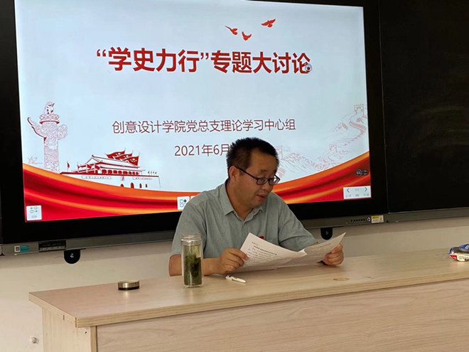 6月24日下午,创意设计学院党总支理论学习中心组组织开展“学史力行”专题大讨论活动。研讨由党总支副书记张云丽支持,总支班子成员、副科级干部及各支部书记参加,全体党员列席。