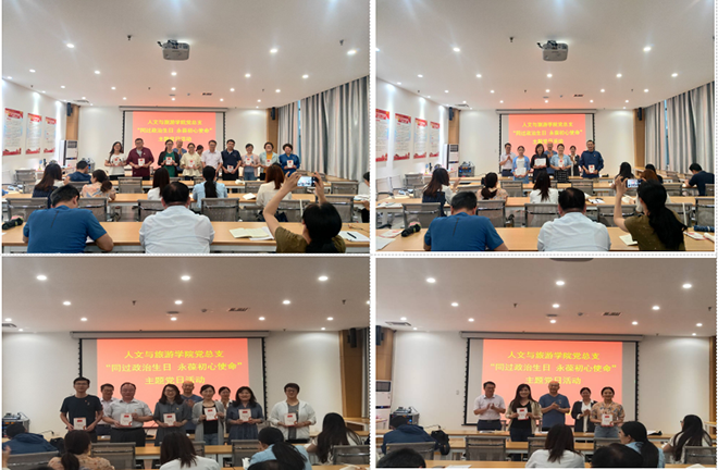为强化学院党员教师党性教育,进一步激发党员政治热情,增强党员责任感、使命感以及为人民服务的宗旨意识,6月17日下午,人文与旅游学院党总支在学校主题党日活动中心组织开展了“同过政治生日,永葆初心使命”主题党日活动。活动由学院党总支副书记陈玉香主持,全体党员教师参加。