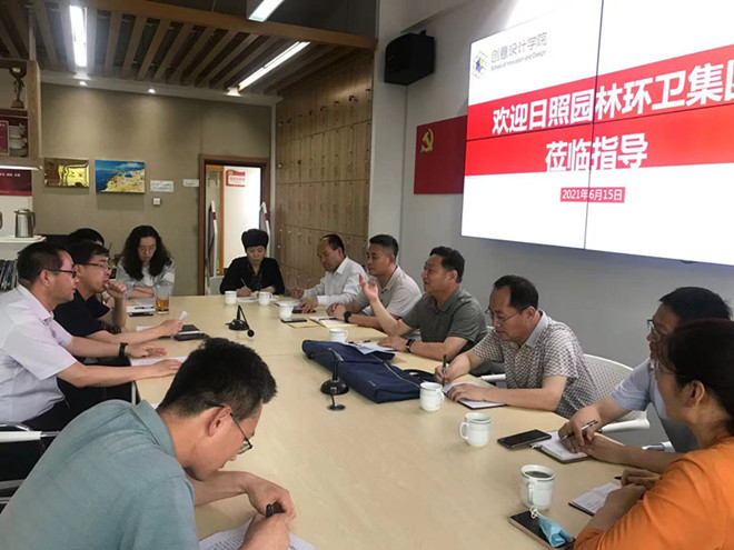 6月15日,日照市园林环卫集团有限公司党委书记、董事长李宗文一行11人到创意设计学院洽谈校企合作办学事宜,党总支书记、院长张永宾代表学校对客人来访表示热烈欢迎,并陪同参观了文化创意中心,介绍了工作室教学、学科特色、人才培养等基本情况。随后,双方在会议室进行友好交流。