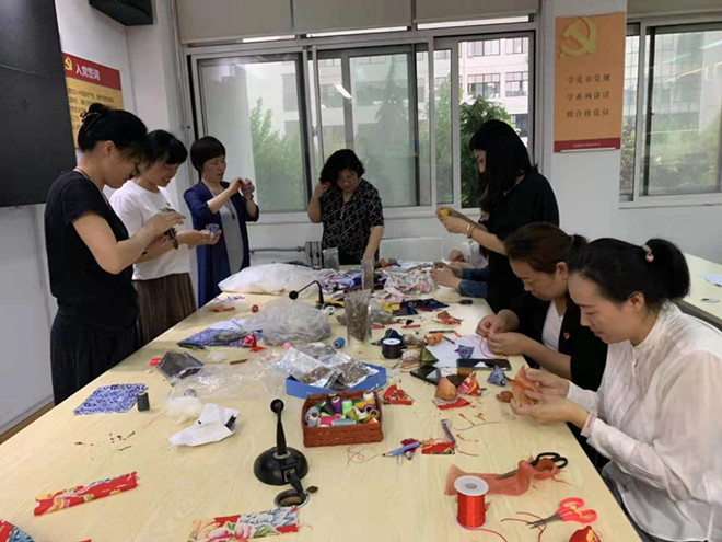 “端午情 绣荷包”,老师们围坐在一起,听张春梅老师耐心细致地介绍荷包制作所需的材料、缝制方法及小技巧。大家纷纷拿起手中的布料,穿针走线,互相探讨,边绣荷包,边聊端午习俗,欢声笑语中深刻体味了传统文化的魅力。 (创意设计学院 陈坤)
