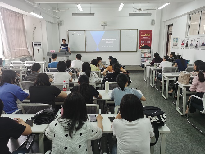 院长卢兆丰作题为《山东省青年教师讲课比赛总结与提高》的分享。以存在的问题为切入点,总结了备赛及比赛过程中的常见问题及改进策略。在课程内容的选取上,要注重理论联系实际、学术性、前瞻性及逻辑性。教学组织上,要注重教学方法的选择、教学时间的把控、多媒体技术的运用、板书的逻辑及语言教态的规范。