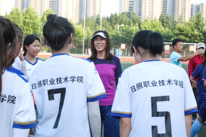为提升足球竞技水平,丰富和活跃校园课余文化生活,增强体质,增进友谊,我校女子足球队与莒县一中女子足球队于6月7日下午在我校足球场交流比赛,比赛邀请了原国家女足队长王红(现中国足球协会地区女足青训总监)、范运杰(原中国国家女子足球队长,第七届全运会冠军,现中国女足青年教练员)莅临指导。