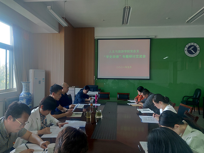 为了大力发扬红色传统、传承红色基因,进一步推进党史学习教育走深走实,坚定党员不忘初心、牢记使命的决心和信仰,根据学校党史学习教育安排及要求,5月27日下午,人文与旅游学院党总支在和润楼B304会议室,召开了开展“学史崇德”专题研讨会, 学院党总支班子成员参加会议,各支部支委成员列席会议,党总支书记吉良新主持会议。