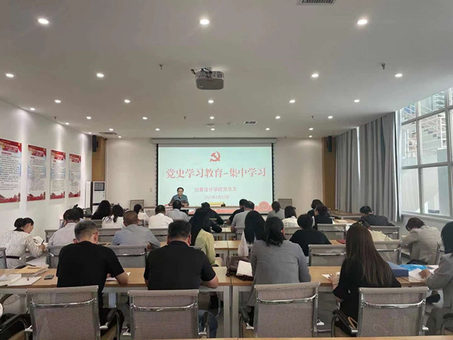 5月27日下午,创意设计学院党总支在学校图书馆党员活动中心组织全体党员开展党史集中学习活动,并进行了阶段性总结与下一步工作调度。