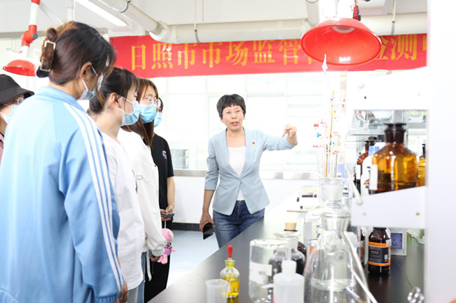 快检结束后,志愿者服务队在老师及工作人员的带领下,到日照市市场监管检验检测中心参观。工作人员对中心的机构职责,工作程序,设备、及主要业务情况进行了详细讲解,并回答了同学们的提问。(海洋工程学院 贾晶)