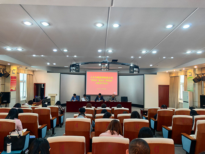 为深入开展党史学习教育,引导学院党员教师学好百年党史、传承红色基因、增强信仰信念、凝聚奋进力量,5月20日,人文与旅游学院党总支在和润楼一楼报告厅开展了题为“学党史 强信念 跟党走”的主题党日活动。活动由学院党总支宣传统战委员李凌主持,总支班子成员和全体党员教师参加。