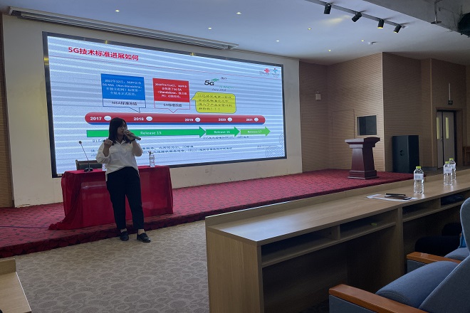 叶海纳长期从事电信运营商的技术与业务创新,目前致力于“5G+北斗”通导融合技术在智慧城市中的应用,发表中英文SCI及EI论文10余篇,授权专利7项。叶海纳的报告分别介绍了5G、北斗等新一代信息技术的基本情况,5G+北斗如何赋能各行各业,并引用具体数据介绍了当前国内5G的建设情况。报告内容深入浅出,非常适合移动通信技术专业学生学习理解。北京华晟经世信息技术股份有限公司驻校团队负责人丁亮做总结发言,并勉励同学们认真学习专业知识,做一个对社会有用之才。