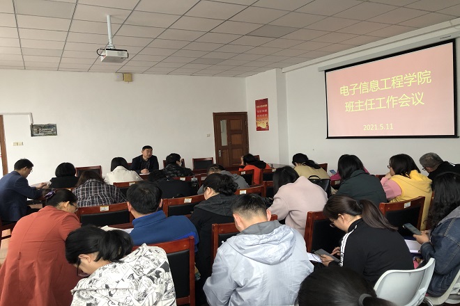 5月11日下午,电子信息工程学院在地滋楼A404召开班主任工作会议,党总支副书记田锋和全体班主任参加了会议。