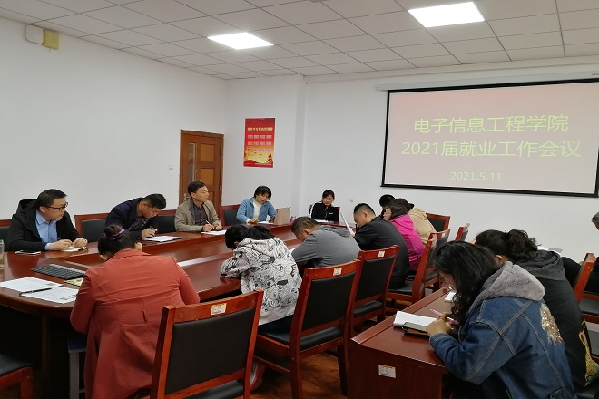 5月11日下午,电子信息工程学院在地滋楼A404会议室召开2021届毕业生就业调度会,院长申作伟、党总支副书记田锋、北京华晟经世信息技术股份有限公司驻校团队负责人丁亮、2021届毕业班班主任及就业联络员参加会议。