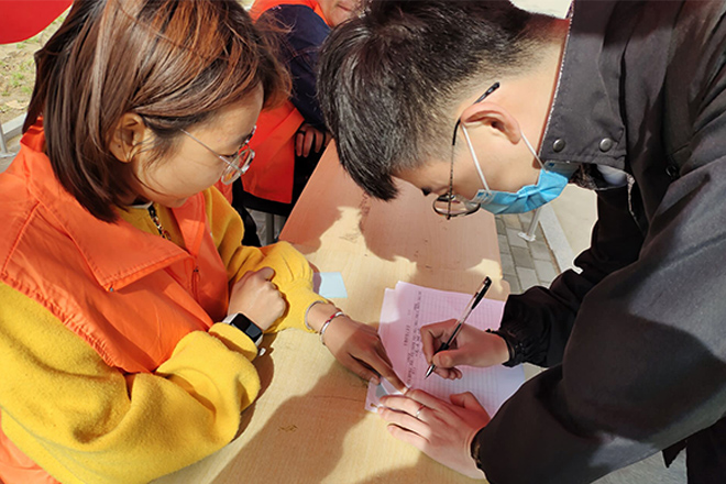 志愿者为了能在第一时间为运动员及观看比赛的学生提供优质的服务,提前来到指定场地,支起帐篷,摆开桌凳,准备好相关的材料,以便同学们在捡到物品或者丢失物品的时候能够及时登记。志愿者采用轮番制值班的形式,以确保在每个时间段内都有学生志愿者能够为往来人员提供相应帮助。