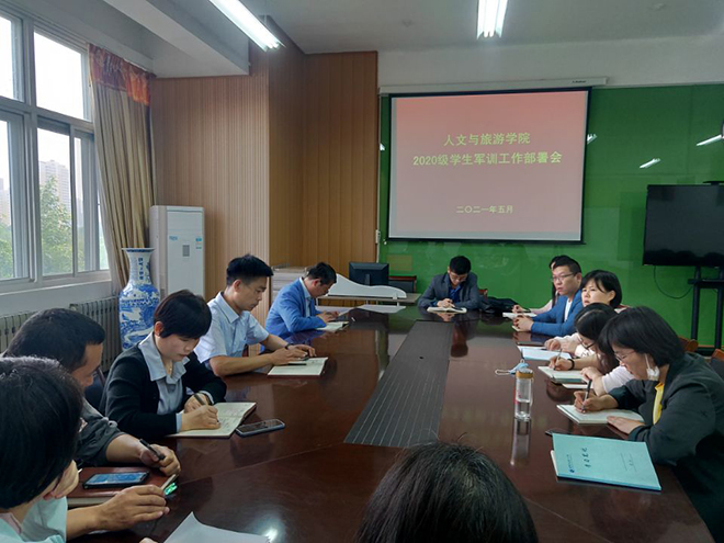 为保障2020级学生军训工作顺利开展,达到预期的军训效果,5月6日下午人文与旅游学院在和润楼B304会议室召开了军训工作调度会,院长丁明军、其他总支班子成员、2020级班主任和全体辅导员参加了此次会议。