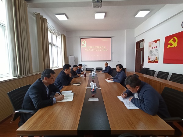刘祥斌还结合学校今年的重点党建任务和学院突破项目,谈了自己“学史增信”的感受与体会,他强调要进一步发挥班子成员示范带头学的作用,树立良好的学习典范,带动全体党员自觉加强党史学习教育,进一步强化不忘初心、牢记使命的决心和信仰,带动全体师生切实增强“四个意识”、坚定“四个自信”、做到“两个维护”。