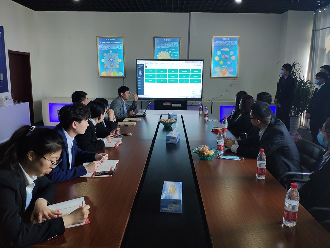 在公司会议室,同学们在观看了公司负责实施的广西贵港智慧城市项目介绍视频之后,正在公司实习和已经就业的六名学长结合进入公司后的成长的心路历程,一一向学弟学妹们提出了关于大学学习和生活的建议;随后,袁一鹏向同学们介绍了公司在国内智慧城市建设领域的项目情况,鼓励同学们务必在课程之外用几倍的时间来消化巩固课上所学知识,打好知识技能基础;公司王丽萍对所有来访师生表示热烈欢迎,表示希望加强企业与学校之间的进一步合作。为了让同学们更加直观的感受智慧城市项目,公司技术负责人魏玉成经理为同学们现场讲解并演示了广西贵港智慧城市的有关功能,包括智慧管道、智慧农业、智慧消防等模块。