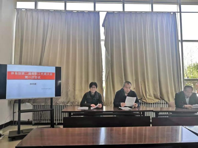 4月20日上午,体育部第二届教职工代表大会第一次会议在庄严的国歌声中拉开序幕。会议听取并审议了《体育部年度工作报告(草案)》和《体育部关于2020年预算执行情况和2021年经费预算草案的报告》。