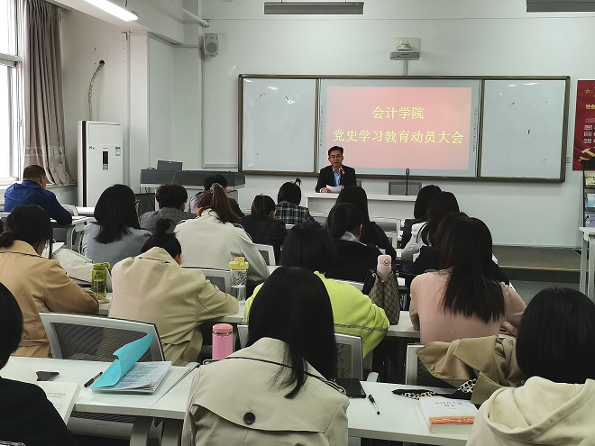 4月20日下午,会计学院党总支召开党史学习教育动员大会,对开展党史学习教育工作进行全面动员和部署。会计学院全体教职工参加会议。
