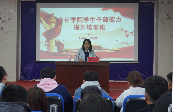 为进一步提高我院学生干部的整体素质和工作能力,增强服务师生的意识,会计学院于4月15日在山润楼119报告厅组织开展学生干部能力提升培训班。培训由副院长沈全芳主讲,会计学院175名学生干部参加。