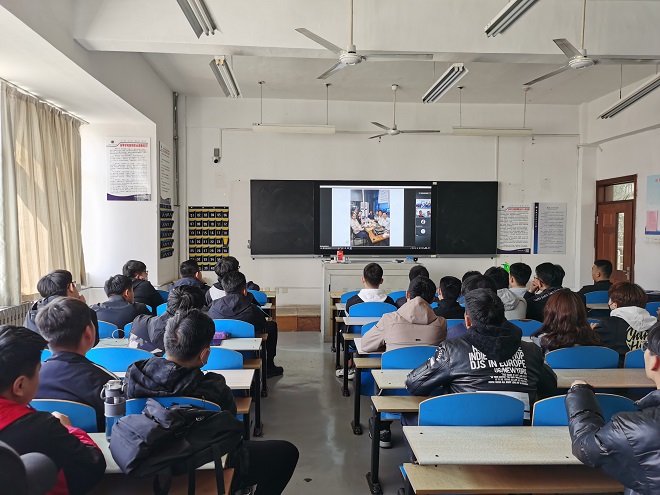 留学生代表赵泽坤结合自身经历向师弟师妹们做了留学学习和生活的分享。2020年9月全球疫情还未明显好转,2018级5位同学靠着坚定的信念毅然飞往韩国,迈出留学坚实的第一步。5位同学快速地融入新环境,适应着留学生活。2020年第一期TOPIK2级考试中都取得了优异的成绩,并已经开始着手为TOPIK3级做准备。部分国内的同学提出了一些问题,屏幕两端的同学进行了良好的互动。