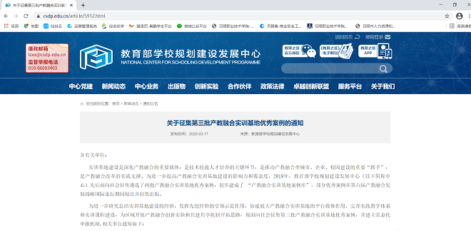 2021年3月底,由电子信息工程学院丁亮、耿垒、高培方三位老师执笔的《数字赋能,促进教育生态优化升级——日照职业技术学院ICT行业创新基地》,经评审,入选教育部学校规划建设发展中心产教融合实训基地优秀案例。案例编号:2021SXJD03005。这是学校深化推进校企合作办学、优化教育教学实训基地建设工作方面取得的一个重要成绩。