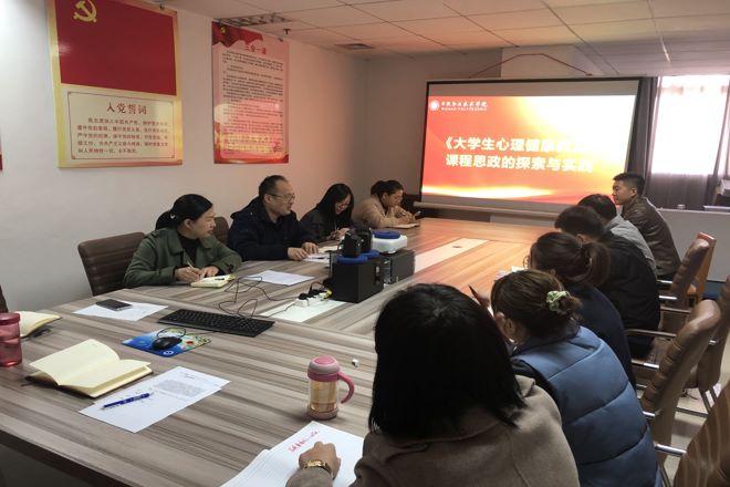 为落实《高等学校课程思政建设指导纲要》的要求,深入挖掘心理健康教育课程思政元素,4月8日上午,心理健康教育教研室组织召开“大学生心理健康教育课程思政的探索与实践研讨会”,教研室全体教师参会。