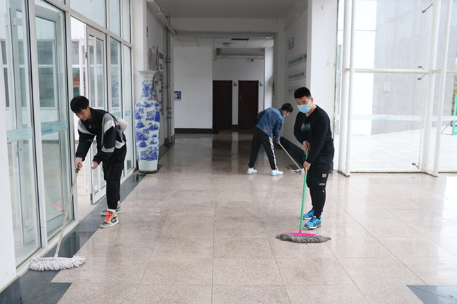 学员们对教学区内教室和公共区域卫生死角进行彻底清理,劳动期间,志愿者们分成小组,积极配合,手拿扫帚、抹布等清洁工具,进行拖地、扫地、擦黑板、倒垃圾等清扫活动,将地面、桌面、暖气片、墙角等处彻底清扫整改,改善了教室和公共区域的卫生环境。