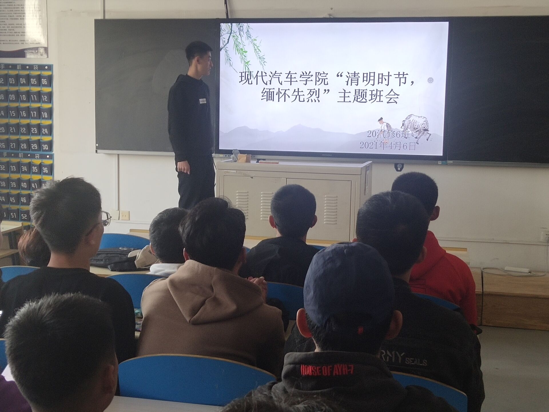 为培养引导我院学子不忘革命先烈,弘扬爱国主义精神,树立远大理想,4月1日—4月6日,现代汽车学院组织召开“清明时节,缅怀先烈”主题班会。