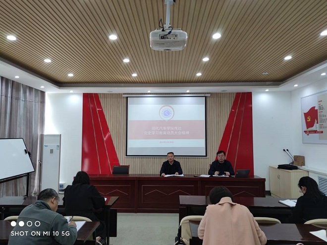 3月30日下午,现代汽车学院在山润楼二楼会议室组织召开专题会议,学习贯彻学校党史学习教育动员大会会议精神。学院党总支书记、院长牟盛勇主持会议,全体教师与会。