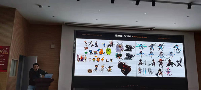 技术总监紧紧围绕游戏美术行业的现状、游戏美术设计制作的流程、同学们现在需要做什么和同学们将来能做什么这四个问题给同学们做了一场高质量的讲座。讲座主要通过云图动漫公司大量的项目案例,在讲解游戏美术设计制作的流程中逐个对以上问题做了详细的分析。讲座现场还进行了良好的互动,同学们根据自身情况和对游戏美术行业的理解提出了自己的疑问,他结合自身的成长经历给予了积极的解答,更加增强了同学们对游戏行业发展的信心和专业学习的信心。