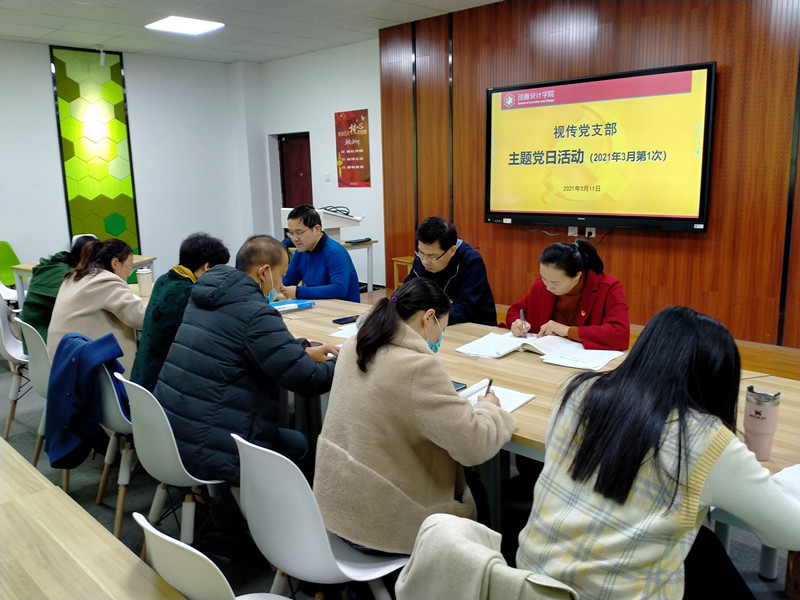 3月12日,创意设计学院党总支视传党支部召开了本学期第一次主题党日活动。第一议题是习近平在党史学习教育动员大会上的讲话,由支部成员轮流领学。活动还安排集中学习了习近平总书记在中央党校(国家行政学院)中青年干部培训班开班式上的讲话、习近平在全国脱贫攻坚总结表彰大会上的讲话,并展开了热烈的讨论。活动还调度了“TA改变了我”主题征文活动、学习强国、灯塔党建在线-党员教育学习情况、党员进社区活动的调度。