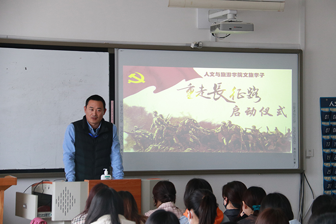 为庆祝建党100周年,引领全院师生听党话、感党恩、跟党走,3月11日,人文与旅游学院“文旅学子重走长征路”系列活动启动仪式在和润楼A401举行。学生工作党支部书记张伟,辅导员康馨及2019级全体党员发展对象和入党积极分子参加了此次启动仪式。