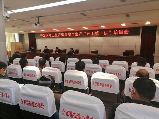 为切实提高渔业安全管理水平,增强渔业从业人员安全生产法律意识和自我防范能力,有效防范和遏制各类事故发生,根据日照市人民政府安全生产委员会《关于组织开展李节后复工复产安全生间“开工第一讲”活动的通知》文件精神,继续教育学院渔业船员培训中心于2月22日、23日,会同日照市经济开发区、山海天旅游度假区渔业主管部门分别组织辖区渔业公司、船舶修造、渔港等企业负责人、海上养殖业户、渔船长等开展节后复工复产安全生产“开工第一讲”培训活动,两区共有全区重点渔业企业(码头)负责人、渔船主代表、各街道渔业负责人、各渔业村渔业主任等200余人参加了培训学习。