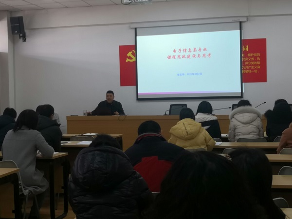3月2日,电子信息工程学院在地滋楼421会议室举行电子信息类专业课程思政建设专题培训,副院长牟志华做专题报告,全体教师参加培训。