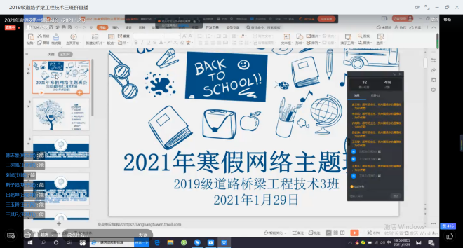 本次班团会,是寒假期间对学生开展教育引导的有效手段,同时让同学们更加明确了假期规划,注意疫情防控、生活安全、假期学习、个人健康等问题。(建筑工程学院 毛风华 雷永超)